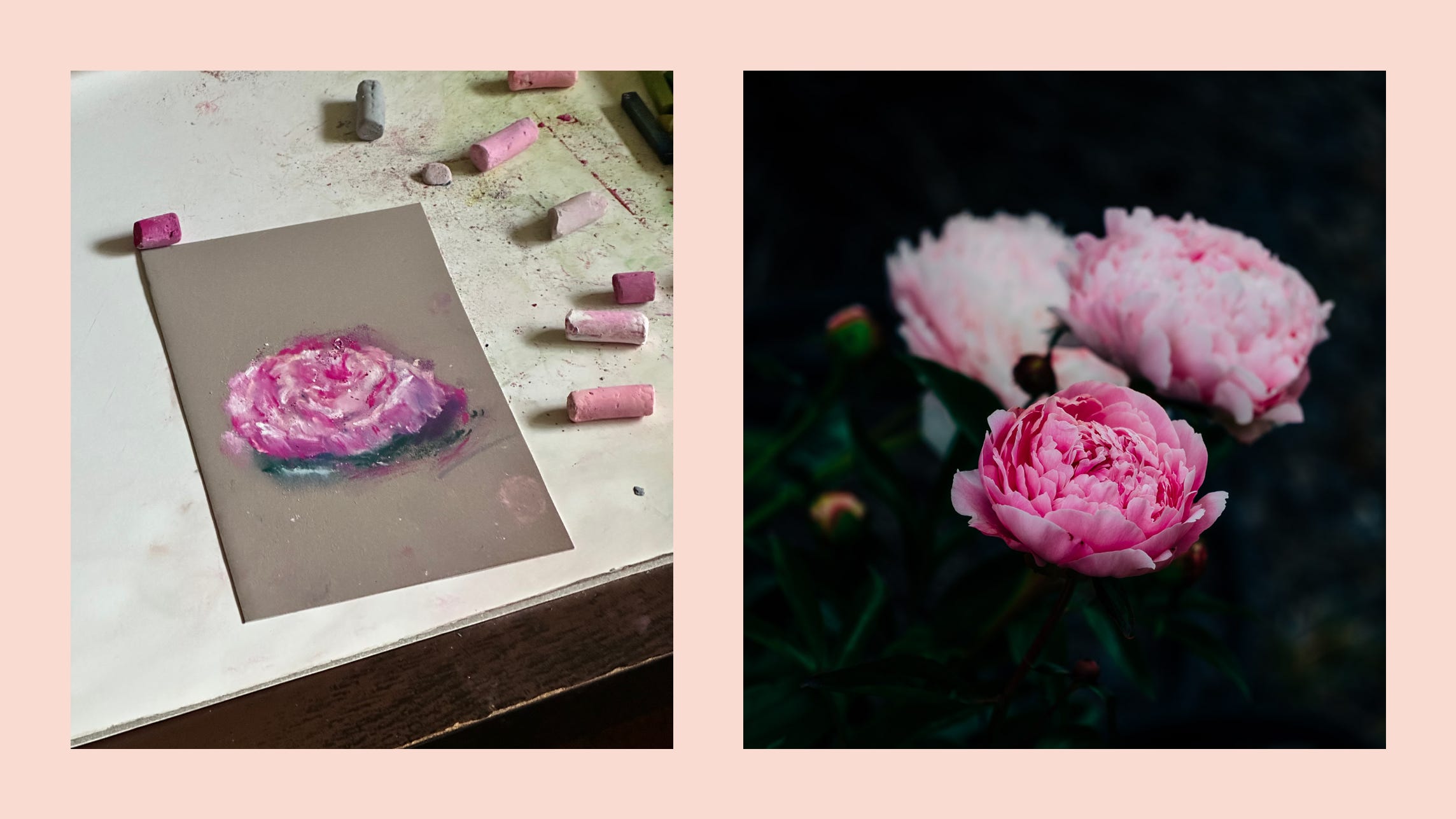 I paint mother’s peonies. Which were my grandfather’s peonies. which are now my responsibility to keep alive. I have little faith in that so I memorialize. I do both quite poorly. Keeping them alive and memorializing. I find being entirely lost at soft pastels both torture and liberation. I miss feeling any sense of mastery, the comfort of years of work like visual muscle memory, but I also like not knowing who i will turn out to be till i make the work.